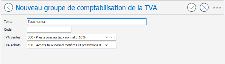 Créer ou modifier un groupe de comptabilisation de la TVA